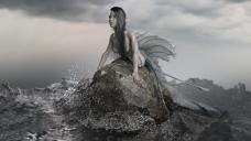 - Wet skin with water droplets on mermaid