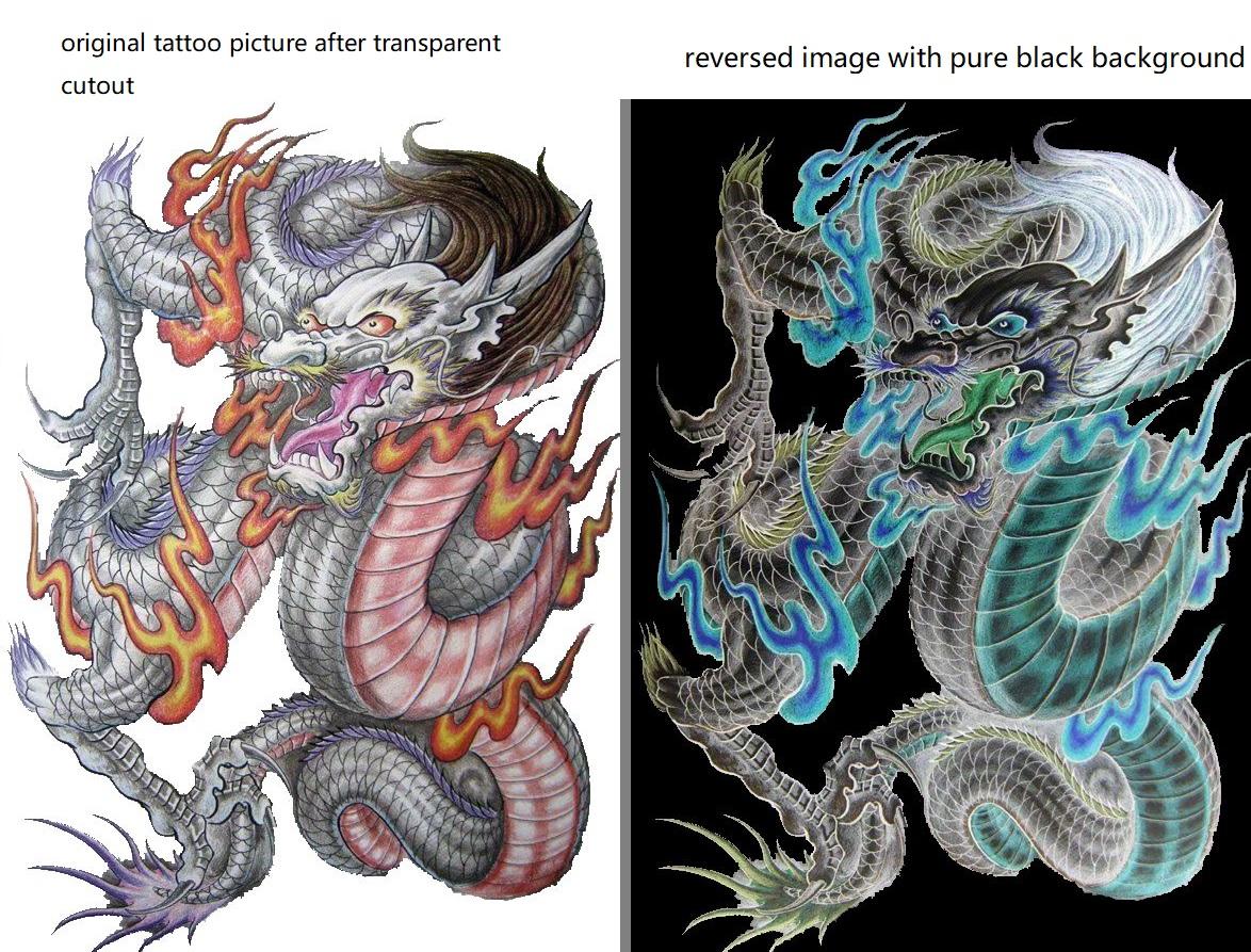 First prepare 2 png pictures, the original tattoo picture after transparent cutout, and its reversed image with pure black background.