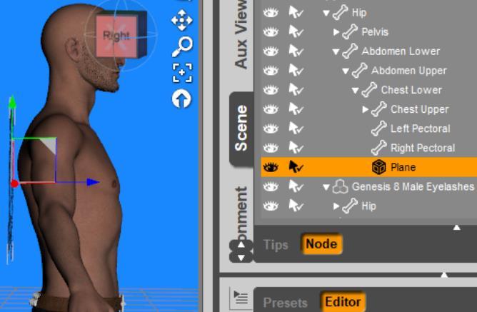 4. parent the plane to figure's Chest Lower, no need to check the 'parent in place', manully move the plane to your ideal position near the back, adjust its scale as your will.