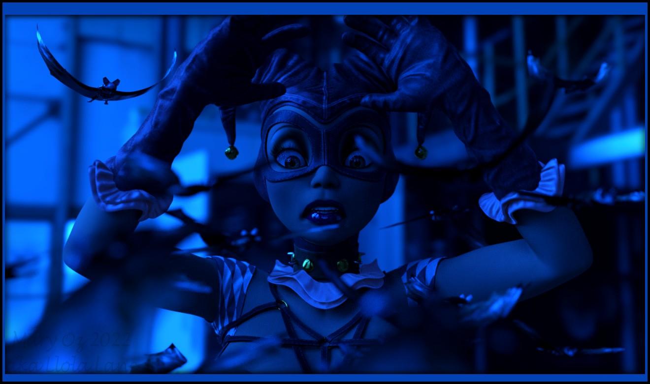 We do???  LOL... I didn't even remember... The expression made me think of what could she be alarmed at... I was checking my GOBOs and saw some bats... Checked my runtime and found a bat swarm...and the rest is history!  lol.  Amazing what an expression can inspire ;)  Thanks!  (maybe you were subconsiously in my brain???)