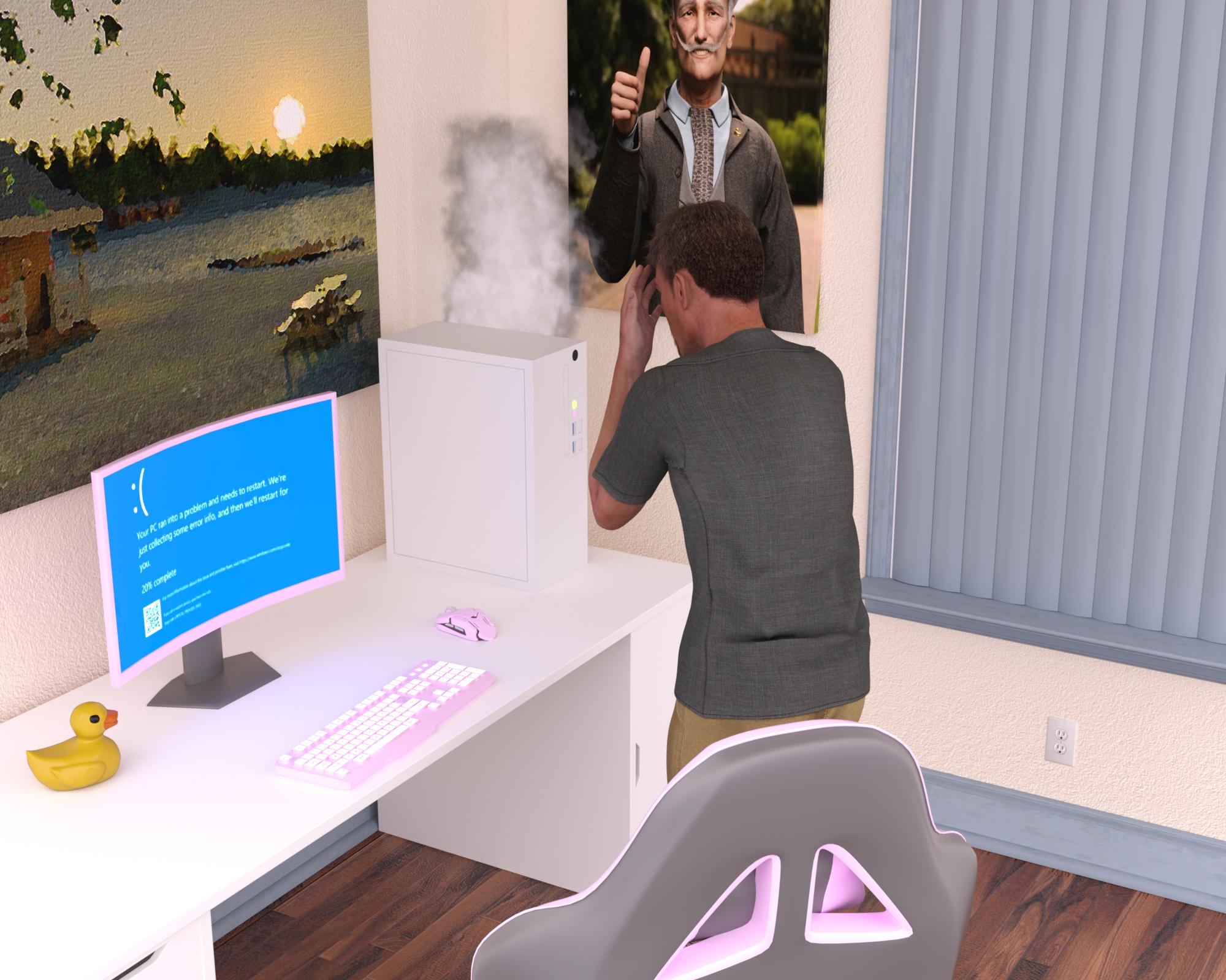 Smoking computers are never a good thing, nice render