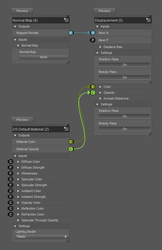 2. Likewise, using the "DS Default Material" brick in Shader Mixer has nothing to do with DzDefault Material.
