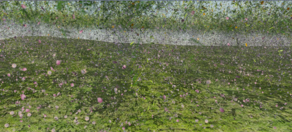 Thanks Dartanbeck. It's basically 3 groups of plants and long grasses replicated over the terrain. I then applied a soft body modifier to the plants and grass and then put a couple of flow forces in the scene and reversed gravity. The soft body modifier makes all the pieces of the plants become separate pieces and the whole lot just falls apart as it flies up into the air. :-)
