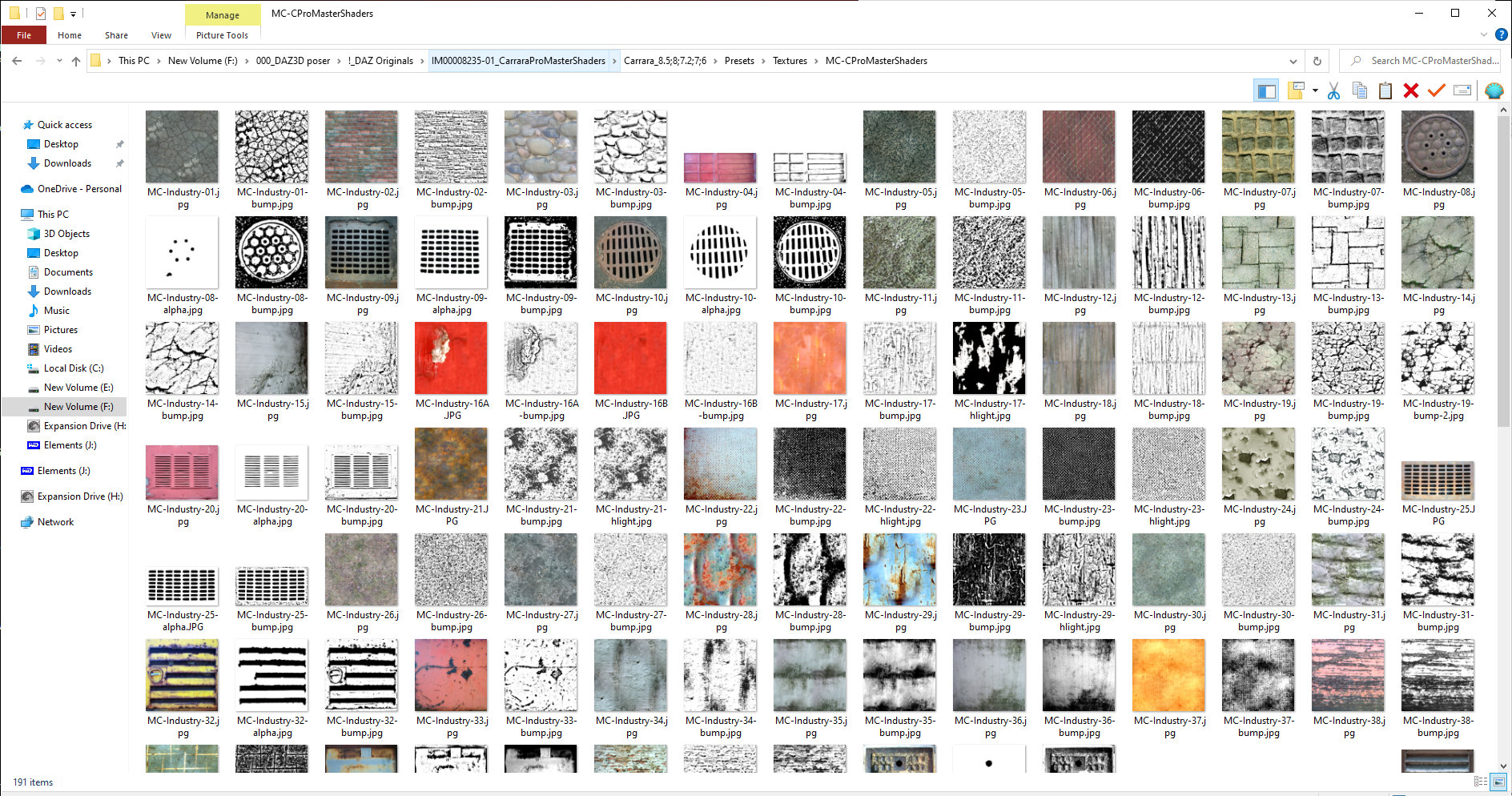 An awesome collection of Carrara 3D Paint Brush Presets using photorealistic textures from my Carrara Pro Master Shaders Package.