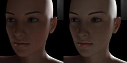 I find it interesting that the skin is actually 'drier' looking and more pale, except the more transparent bits. Also it ended up rendering in roughly the same amount of time.