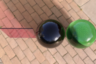 right marble - a green glas material i set up in the ubershader..... black shadows.