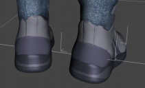 Now that you have hidden the entirely superfluous areas, the parts that need to be at least semi-visible can be addressed. One way is to puse a Push Modifier, which has the benfit of moving the mesh in or out in the direction it faces (with a dForm it scales relative to a single point). Select the whole figure, insteead of a bone, and go to Edit>Figure>Geoemtry>Add Push Modifier. In the Parameters pane assign it a negative value, big enough (in cm) to get rid of everything you want hidden). Now we need to able to edit the weightmap for the modifier, to control what isa ffected and how much. Create>New Push Modifier Weight Node (thise isn't actually the weight map, which belongs to the modifier, it's a way to get at the weight map for editing). Activate the Node Weightmap Brush tool and in the tool Settings pane select Push Modifier and click Add Map. Right-click>Geometry Selection>Select All. Right-click>Weight Editiing>Fill selected and enter a value of 0 - this gives a blank canvas. Now you can use the mouse (or a tablet and pen) to paint the effect back in where needed, gradually puling the unwanted bits of the jeans into the opening of the shoes. How well this will work will depend on how obliging the geometry of the jeans is.