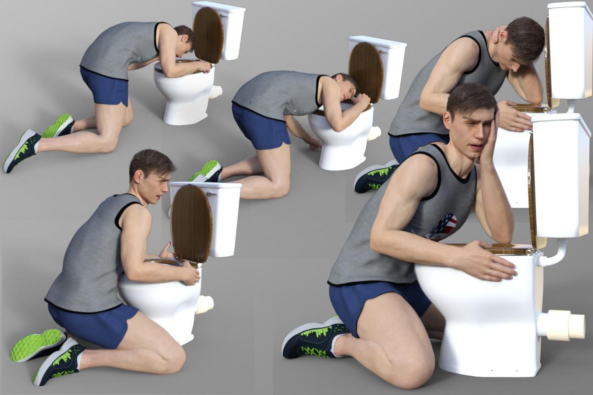 "Last Illness for G8M" is not a threat, it's simply to indicate that this is the final set of vomiting poses! As promised, I have converted the G8F toilet vomiting poses for G8M. They use the same Guy91600 toilet used by G8F above, with an address for the toilet freebie in the readme file.