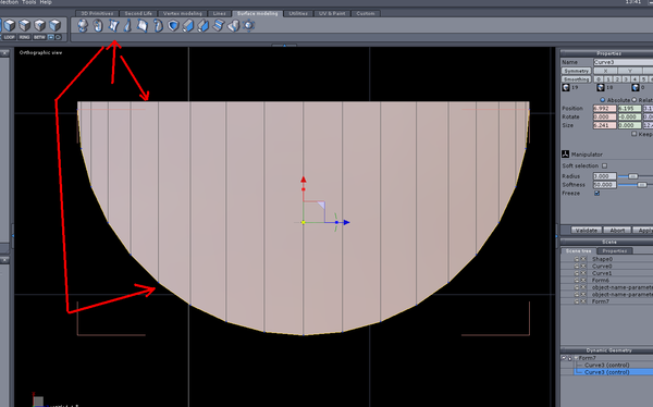 I used the Line and made a circle, then deleted 1/2 off the circle