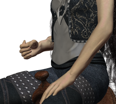 This is Genesis 1. There are a number of morphs applied, some of them from Gen X. It ought not to be a problem, and up to this week it wasn't a problem. But would you look at the distortions that are showing up here in the right forearm and hand? And to some extent in the left forearm.