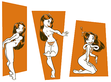 I don't really see the Disney connection with Callie. I think the Girl 6 is much closer (see figure 1 below). In fact, I don't really find the Girl 6 pinup-y at all. The face is more dainty than sexy, and the body, while undoubtedly boobtastic, is almost sterile. The first thing that jumped out to me when comparing the Girl 6 and Callie is how much curvier Callie is. I don't mean waist/hip ratio but rather things like the arms and legs. Girl 6's arms are pretty much straight down from shoulder to wrist. Incidentally this is another area where The Girl is more Disney and Callie is more traditional pinup