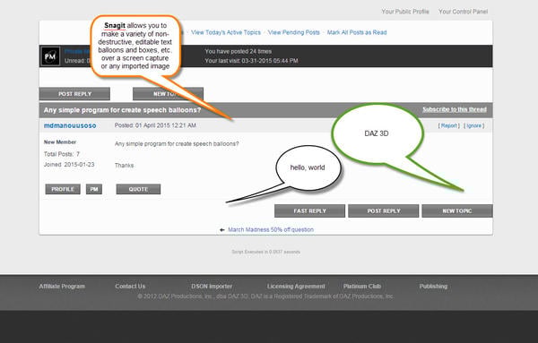 classicdumdick offer some speech Ballons for free on sharecg they are in Poser .pp2 Format