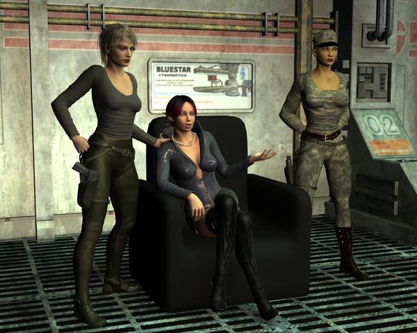 Xangth, giving the woman a weapon was a good thing, now just thinking from a female point of view, if I was to intrude somewhere, I guess I would use a different clothing, but ok I guess thats different if one is a space heroine but I would suggest you rethink her posing, Currently she has that " look at ma I'm so sexy" pose, not very stealthy.
