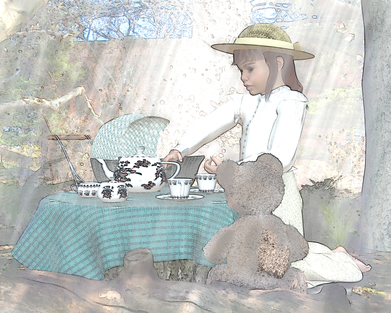 This is quite stunning! It has no suggestion it's rendered, let alone that it's in any way processed or filtered. Looks completely hand-drawn.