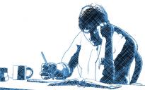 Thanks for the run through. I used the same technique with this illustration. I was in a rush (had to prep something for a work email, which I have finished) and didn't have time to mention that I find the sketch effects -- generall -- are actually too fine for print. If there is any chance the image will be reduced, the details tend to blur togetgher. So when I create the sketch layer, I actually render it at 25%-50% the size of the final illustration. This makes for bigger strokes. I then scale it up in Photoshop (and adjusted the contrast to make them more defined) and then layered them in Manga Studio. For this illustration, I changed their color to give it an element of interest.