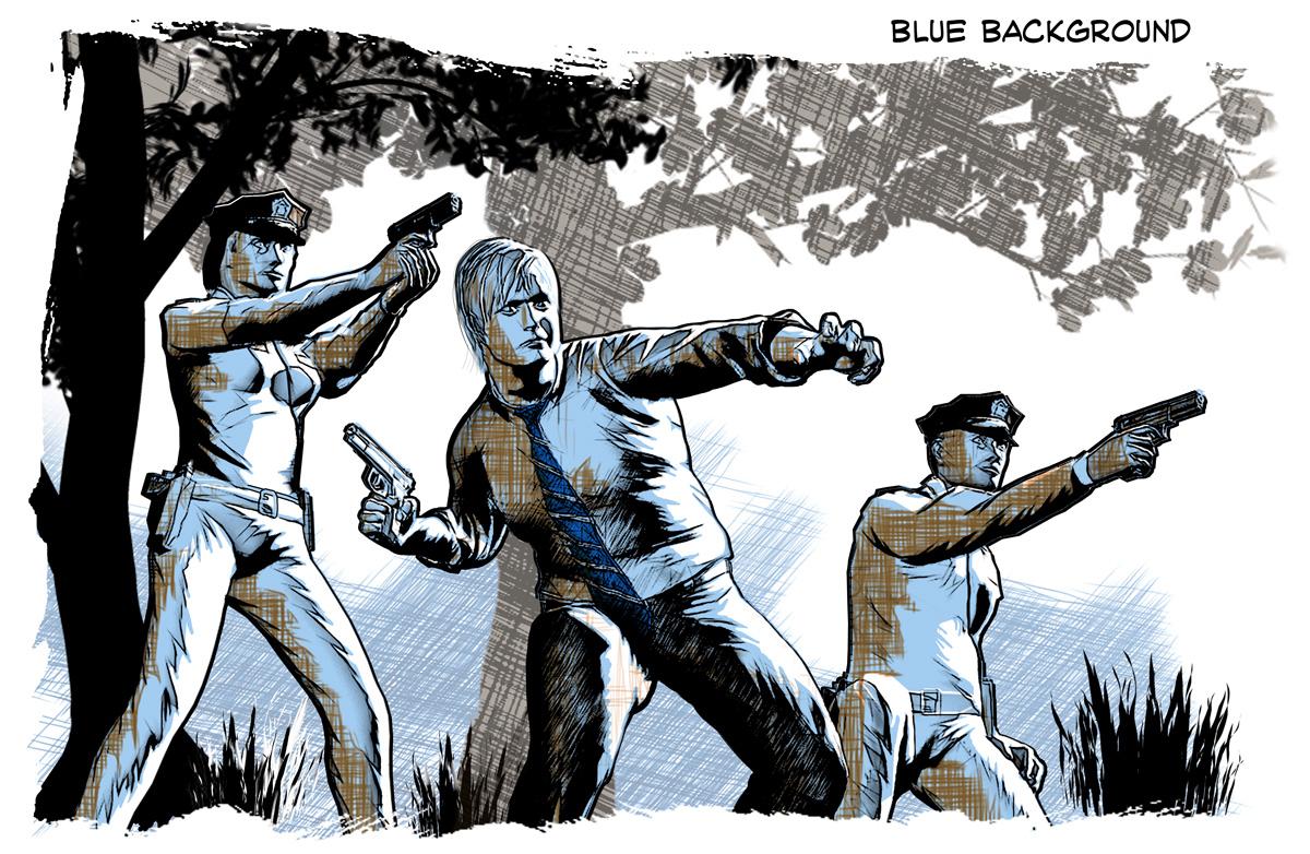 BTW: Created in Poser 11 Pro and Photoshop with Akvis Sketch. Central figure is Michael 4 (w/lots of morphs), other two figures are Predatron Lo-Rez Police.