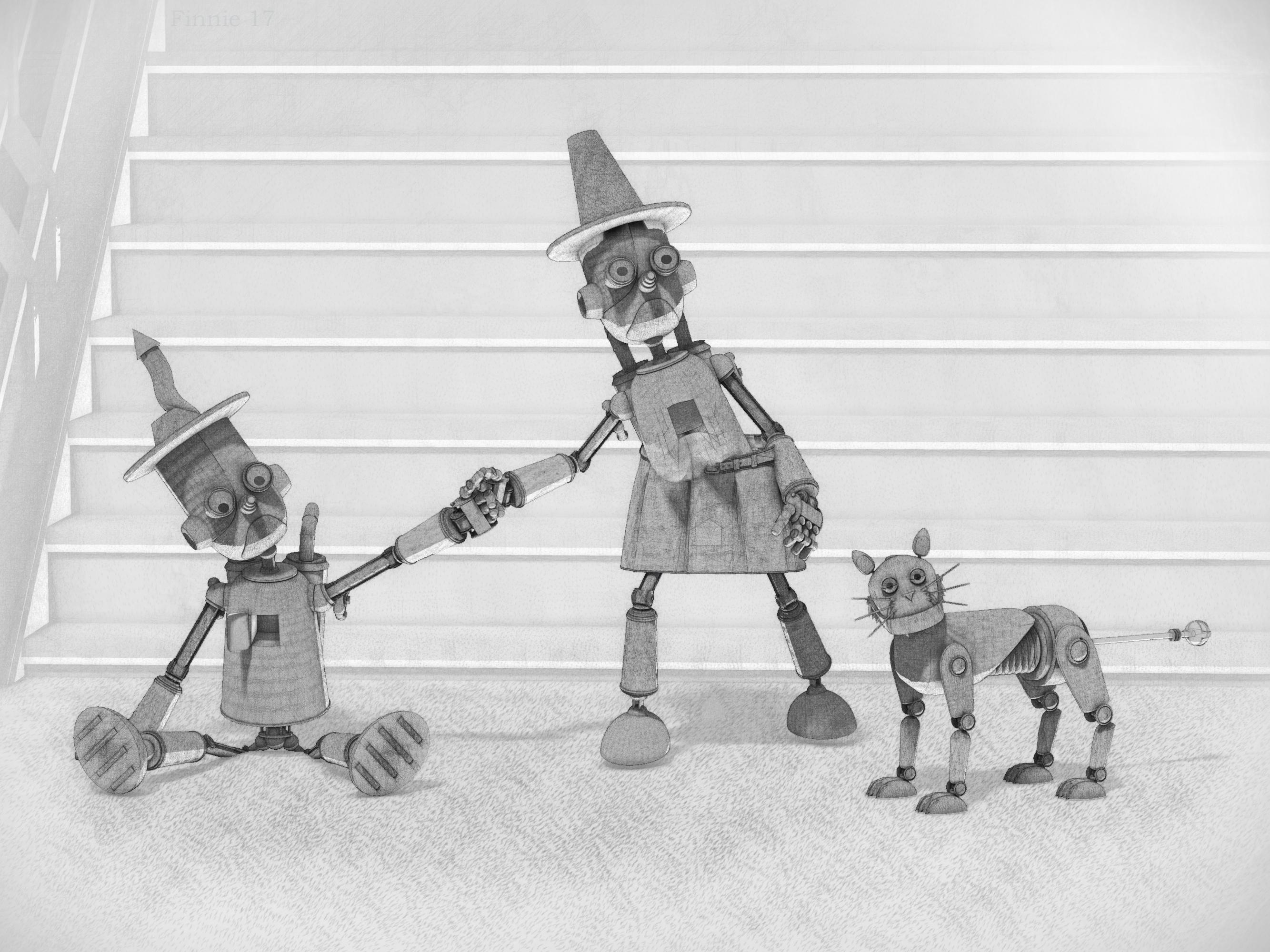 @head_wax - your carrera figures look awesome. Like mmitchell_houston, I did sense that they are too perfect or perhaps too similar.  Upon taking a closer look, maybe it is a combination of the characters' features being too similar (in placement on the face - if just their face elements are differenty placed, they would be similar but not exactly the same), and the posing being a little too stiff.  Now don't ask me how robotic figures can be fluidly posed, lol.  But there is something to be said for combining boxy/straight characters with curves.  You already have some curves in the posing, so I wonder what would happen if you exaggerated them.  They have expressive little faces - very cool.