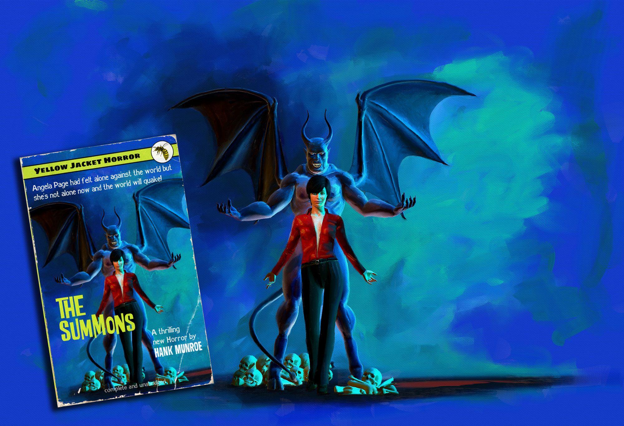 Sorry for taking so long to comment on this one. It's REALLY nice. I like how you provided us both versions -- with text and without. Nice job on the painted smoke. It's got that classic paperback cover look that I really miss in today's books. As for the figure... nicely done, but there's something a bit stiff about her pose. Part of the problem may be that the sexy turn of the hip to our right is kind of blending in with the demon's hip, thus diminishing her pose. I would suggest just exagerating her pose a bit more (arch the back, turn the wrists more, neck more to one side). Just a few tweaks to give us a sense of motion coming to a halt. Anyway, just a few notions as I fade off to sleep. Thanks for sharing a GREAT image.