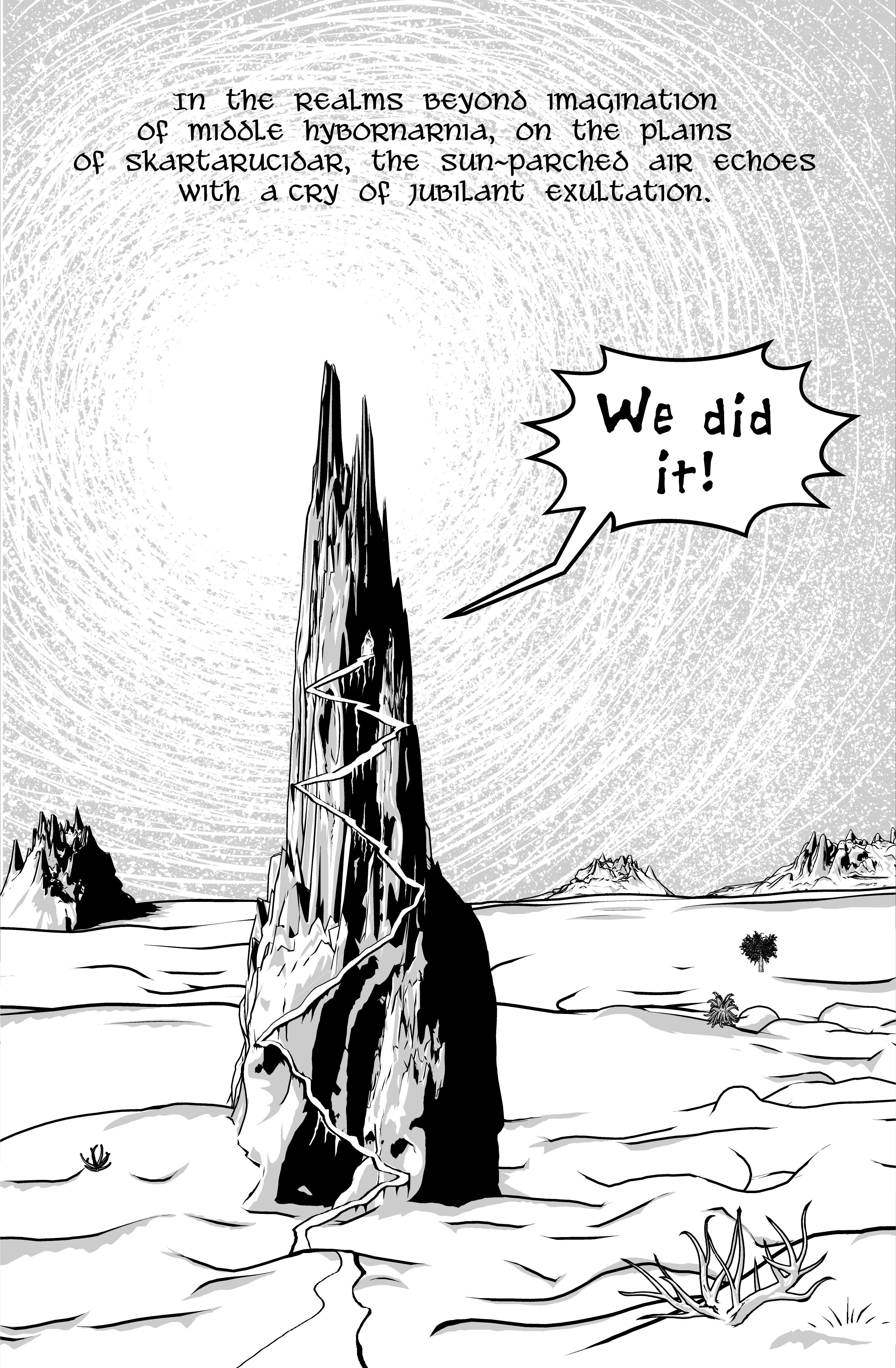 I really am thinking hard about making the path narrower at the top, but have concerns that it might close up in print. I'm gonna think about that, and Im pretty surdits will be made. And I'm now breaking up the lines on the horizon. As for "backstory," there isn't much to speak of, really. This is the Dragon's lair. The entire story takes place inside the cave near the top, and the mountain only appears in two panels. BUT... it's the first panel of the story, and it really needs to set the tone and sets the location for the story. Without it, the story isn't grounded.