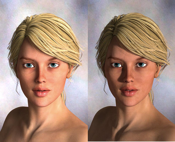 I am in love with how much better her skin is and how much simpler it was to get such a lovely result. However, Luxrender has cloth that I can specify things like thread count and such while still using a trans map without having to change the tiling... I see someone is already working to get procedural textures working in Iray. Do we think it can handle something like procedurally applying a bump/displacement to the surface like the weave of cloth without affecting the tiling of the surface? Or is DAZ working on giving us some presets with that built in? I would prefer the latter as it would speed up my work-flow even faster than having to mes with programing a shader myself - something I have no confidence in at this time.