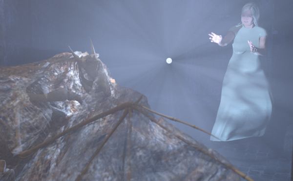 Although as I developed the scene, it turns out you can't see her all that clearly. Ah well.