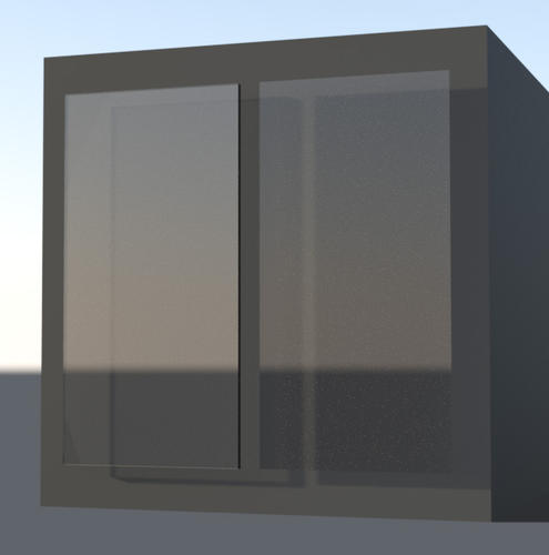 At left is a thin cube which has thickness, and to the right is a primitive plane which has no thickness. Both objects use the same default preset (Glass - solid - clear).