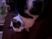 My friends Misty and Oscar made up a 4 letter word. Oscar is white and black, and Misty is a muted tortoiseshell.