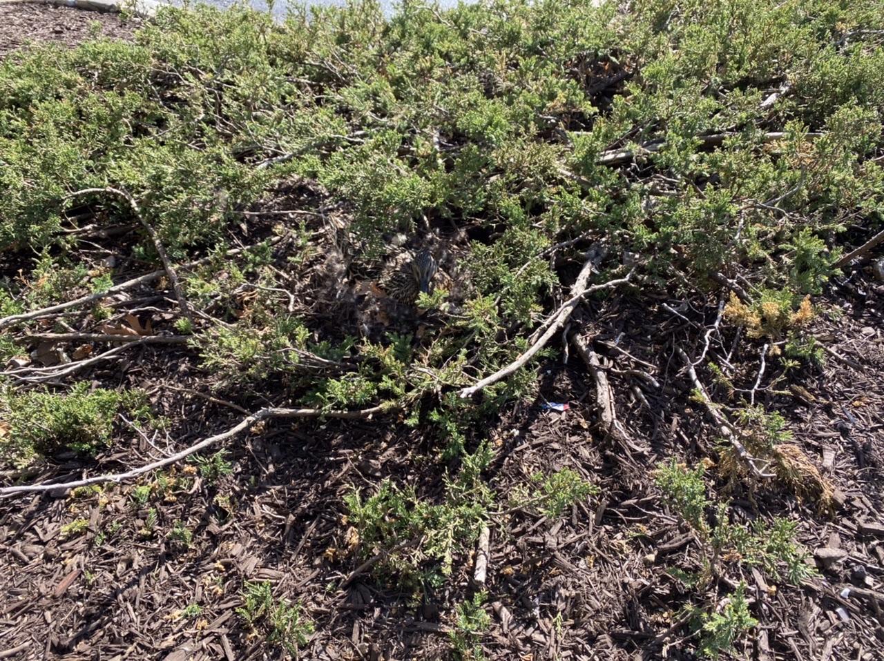 Her little sanctuary is in the middle of a center median at Costco... she startled the hell out of me because I went to rest the front wheels of my shopping cart on the curb (so it won't roll away) and I noticed the camouflage pattern, but had no idea what kind of bird it was... thankfully I didn't disturb her.