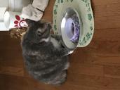 actually the picture is sideways.  Both Misty and her bowl are on the ground.