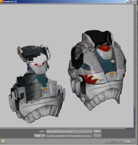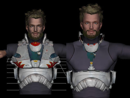The armour on the left was Autofit to Genesis, and then unfitted again, the one on the right was just loaded from the Content Library and is the M4 version. First image is Preview mode, second image is the render (even after it has been unfitted and Genesis removed from the scene)