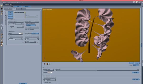 Still doing basic tests. I have a prototype blossom that is made up of several formula objects grouped as a single object. However, when I try to load the grouped blossom as a leaf, Carrara's plant modeler omits the inner stems. I did a test using the same blossom object in a replicator on a cylinder with a restricted domain to mimic a branch. The blossom group works fine when replicated on a vertex cylinder, but when loaded as a leaf in the plant modeling room, some of the pieces are missing.