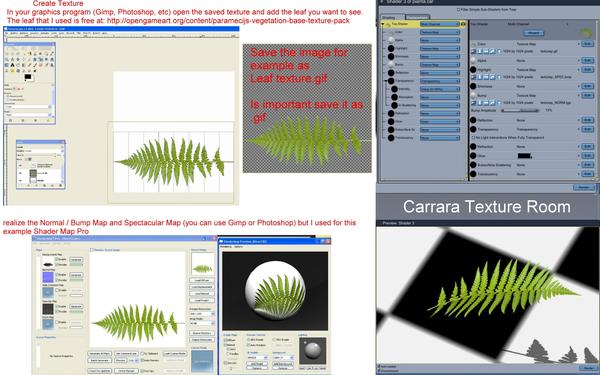 the one I mentioned is the simple way to achieve the texture but as you say, you can also use the texture and the alpha chnannel. But you can also add dirty map on the leaves and change the color and texture of the leaves. In Carrara texture room all is possible ...