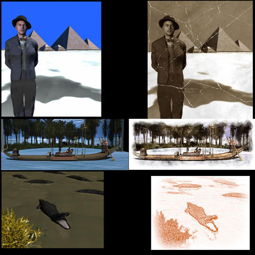 2. A trio of Carrara renders I converted to drawings/watercolor in Photoshop with the post-worked versions