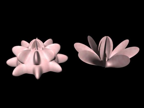 There are other possible base formulas to try. I will be experimenting. This is another one designed for flowers. I will be introducing parameters to make the shape adjustable.
