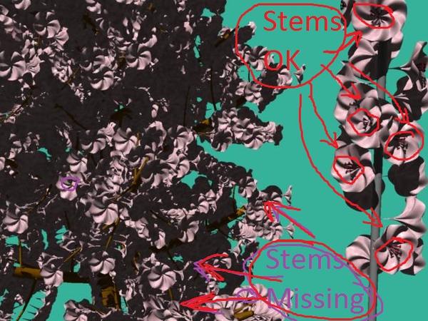 Oh well. I knew I'd have to model a vertex tree for the foreground anyway. A regular replicator will work there. I guess it is no big loss if the distant tree blossoms don't have the stems.