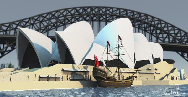 all I did was drag and drop some shaders that come with Carrara and put them onto the opera house and bridge