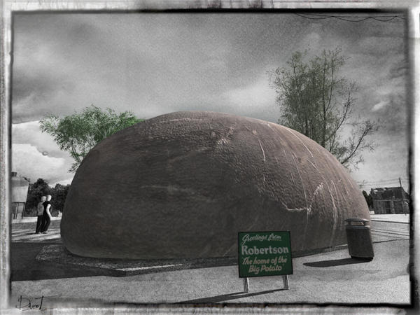 Here is a model of the big potato which is about a 20 minute drive from my place to the top of the escarpment where not only the famous pie place is but also the big potato.. an area that is rich in soil and grows the best potatoes :-)