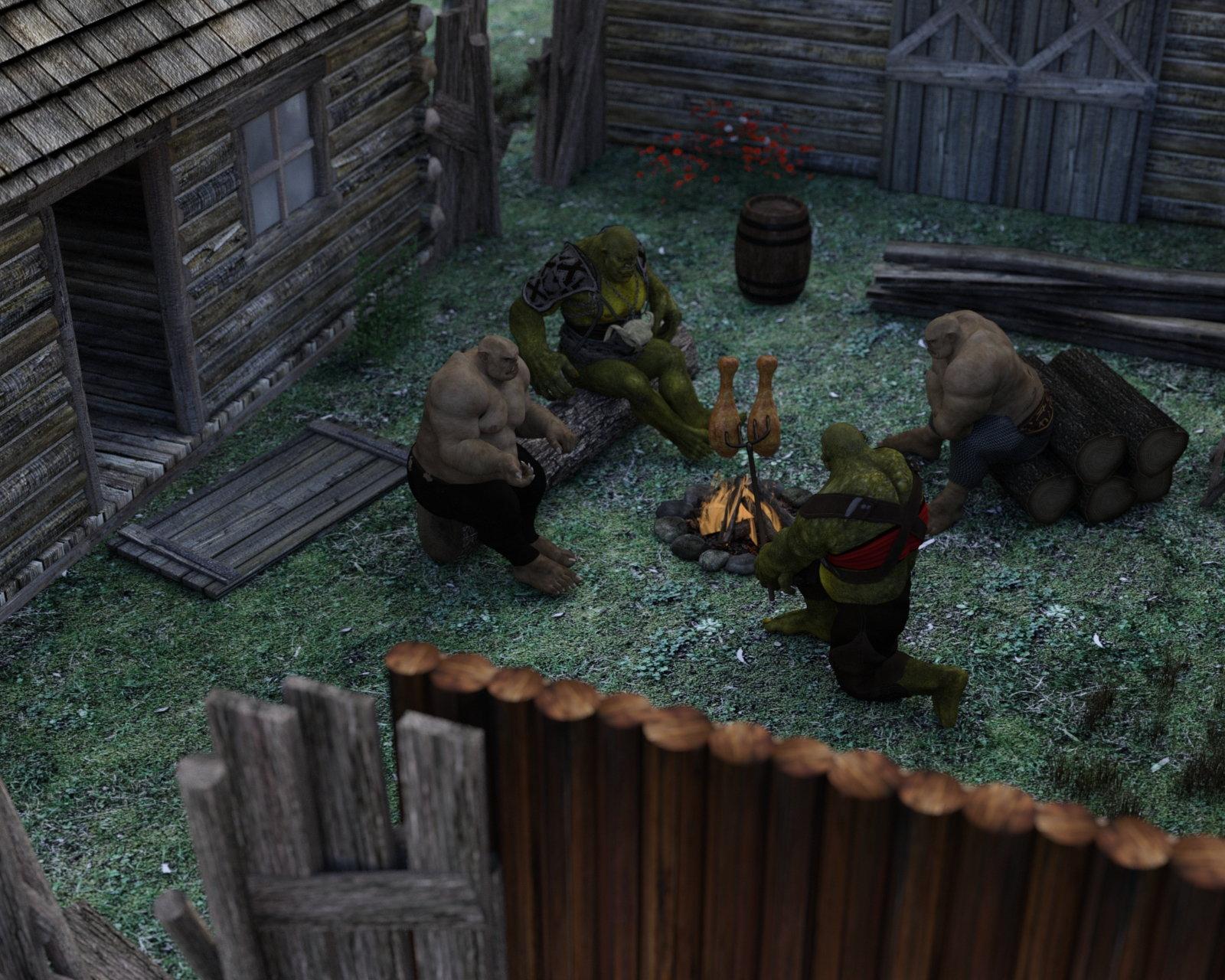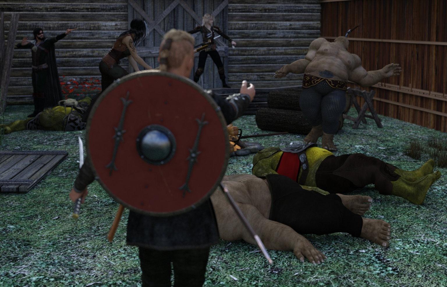 The attack began with Ulfnaar firing his shortbow and Jarhild her crossbow and Garnek some magic, then Ulfnaar charged as crazy, while Merisiel threw daggers from the barn roof and Ater cast some spells. Quite fast, Ameiko, Ulfnaar, Merisiel and Ater took down three of the Ogres and wounded the fourth one, before garnek and jarhild had really realized the battle was going, and when they came rushing against the last standing Ogre, far behind Ulfnaar, Ulfnaar picked up one of his hand axes and threw it right in the forehead of the Ogre, that fell dead to the ground.
