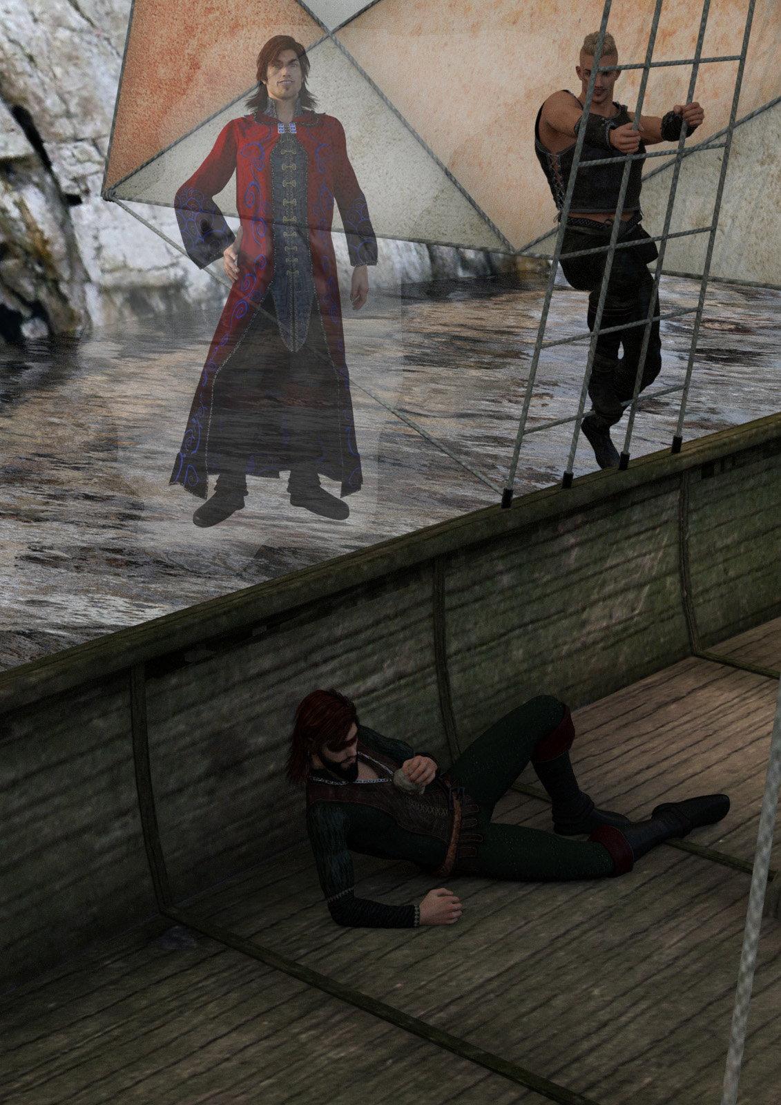 During the journey, Ulfnaar could not stop thinking of what might have happened to Ater. Where had the old, colorful Ater gone and where did the dark, black and pale Ater come from. He never really wanted to ask though, as the reply might be too disturbing. Ulfnaar also thought alot of how he looked at the world around him. His recent encounters with evil, made him more firmly believe in good, and that the group is more important than the individual. he had always been on the good side, but more selfish, which was natural for a pirate.