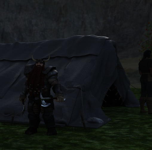 What happened next is too long to write and to difficult describe and make images to as it’s all dark, but to cut a very long story short, the party freed Leosin, and took him to the closest town, Grenest. They now learned that Grenest had been raided during the night but most of the people had survived hiding in the keep. Master Leosin tells the party that he will go north to a town called El'Turiel, to meet a Paladin friend, and that the party should come there soon. With the information Garnek learnt in the tent, they knew that the huge group of dragon cultists were about to leave their hiding place, and the group returned two days later, to try to take out the dragon eggs they believed was hidden in a cave where the huge camp was located.