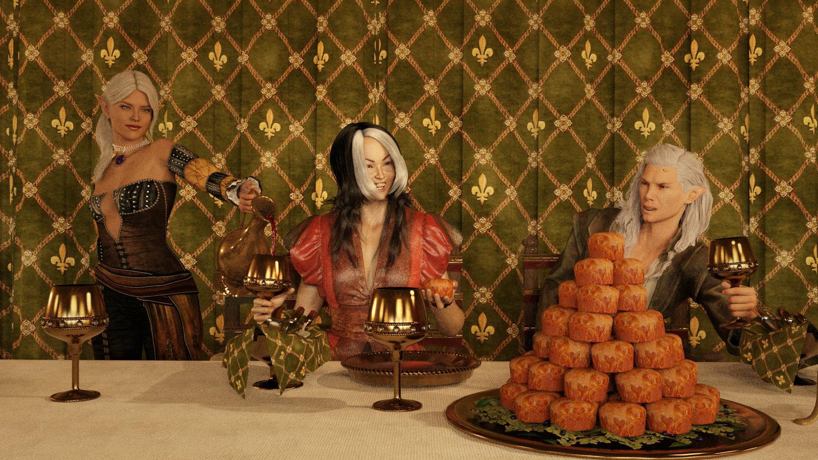 During the next few days, there were first a funeral for Prince Neronvain, then a feast for Prince Linnaril. Ameiko did drink a little too much of the wine and she told maybe a little too much of her true story to her elven hosts. Ater suspected that the wine contained something that made her extra talkative. Even though the Elves are friends of men, and now allies with the Lords Alliance of the Sword Coast, the Elves are always trying to learn the secrets of the world.
