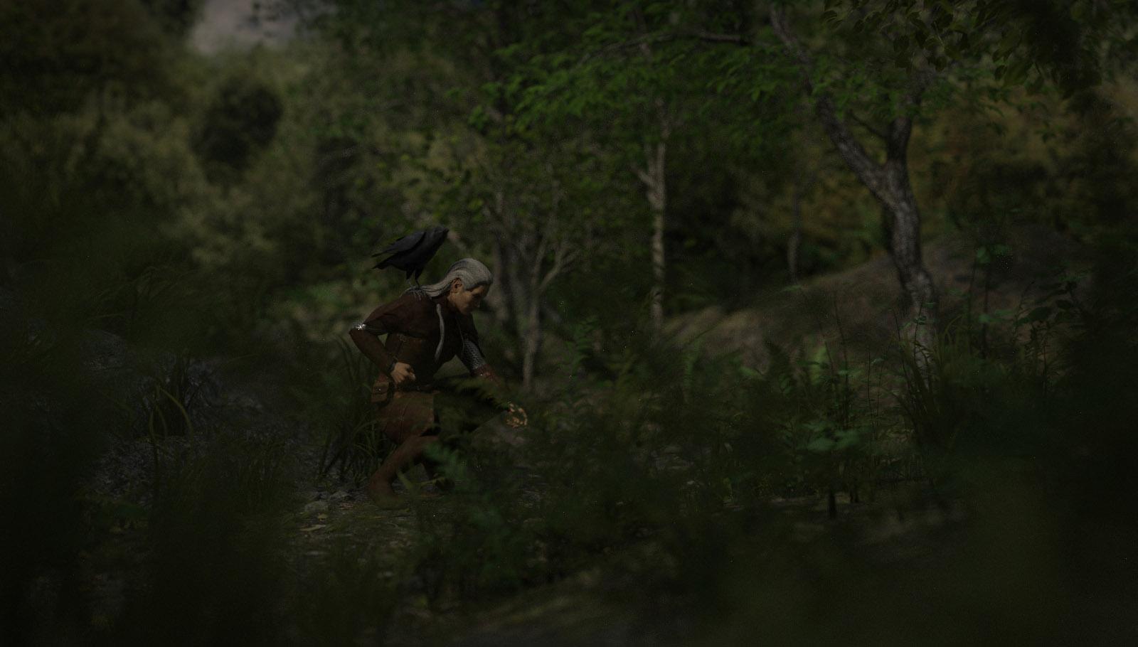 The warden, now living in the clerics old house, with his raven, says he have no idea why the attack ended and only a few houses were damaged and nothing was plundered. Celthor can see dragon footprints, and they size confirms it’s a dragon about the same size as The Old White Death. Celthors sets up a watch, to see if anyone behaves strange during the night, and in the middle of the night, the Warden suddenly leaves the village together with the raven. Celthor sneaks out and follows him, and he stops in a glen, and sits for about an hour before he leaves again.