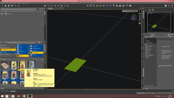 I get a free item on ShareCG; Tarot Set made by Jim Farris (Xaa) but i did not get it to work (in DAZ Studio 4.8). Comments say that it works in DAZ Studio. So I think I did something wrong.