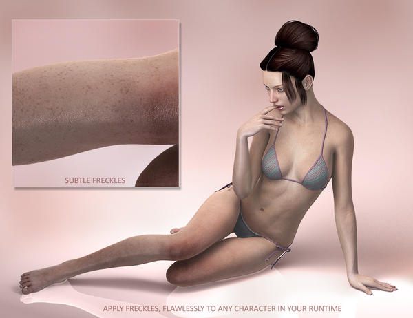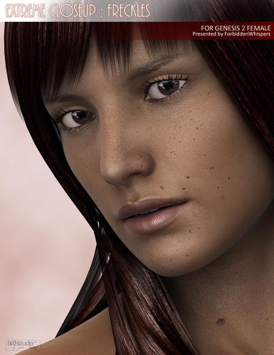 Presenting...... Extreme Closeup: Freckles for Genesis 2 Female(s). A Layered Image Editor Preset to add realistic freckles and beauty spots to any Genesis 2 Female character in your Runtime. Included are presets for 4 skin tone types; Pale, Very Pale, Tanned & Dark.