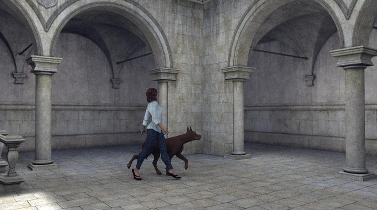 Here are a few examples of renders of this space lit primarily with the 3D Fill combined with a bit of IBL for skylight. Default Sun provides the sunlight.