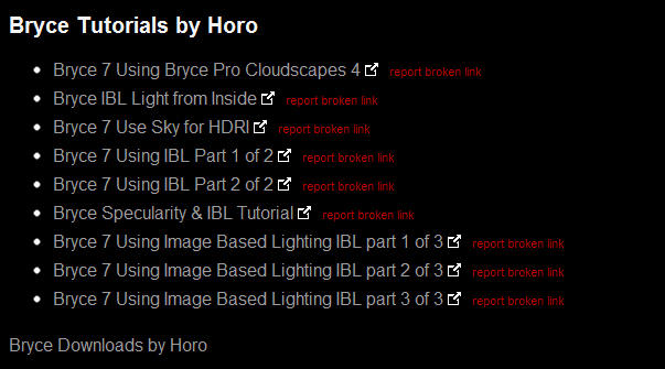 Image one from http://www.bryce-tutorials.info/bryce-tutorials.html