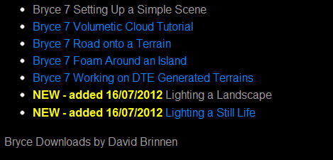 Of the new tutorials all these have something to say about lighting - admittedly some more so than others...