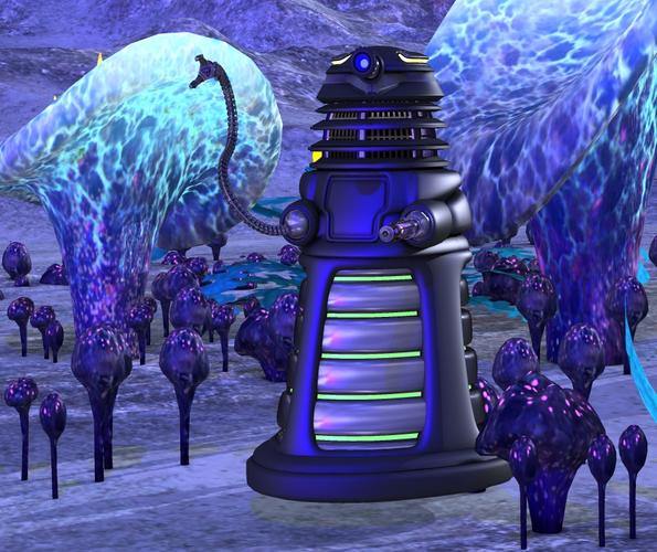 Well, the beauty is that one now has a HUGE selection of Dalek meshes from which to choose. When I first dabbled in DW fan art in the early 2000s, there was only 1 Poser rigged Dalek available, one based upon a mesh James Murphy sculpted. As Poser 4 was the "current" application, it didn't look the best. Without "edge creasing" the "skirt" slats blurred into a smooth "cone". Thankfully, the rendering tools have come a LONG way.