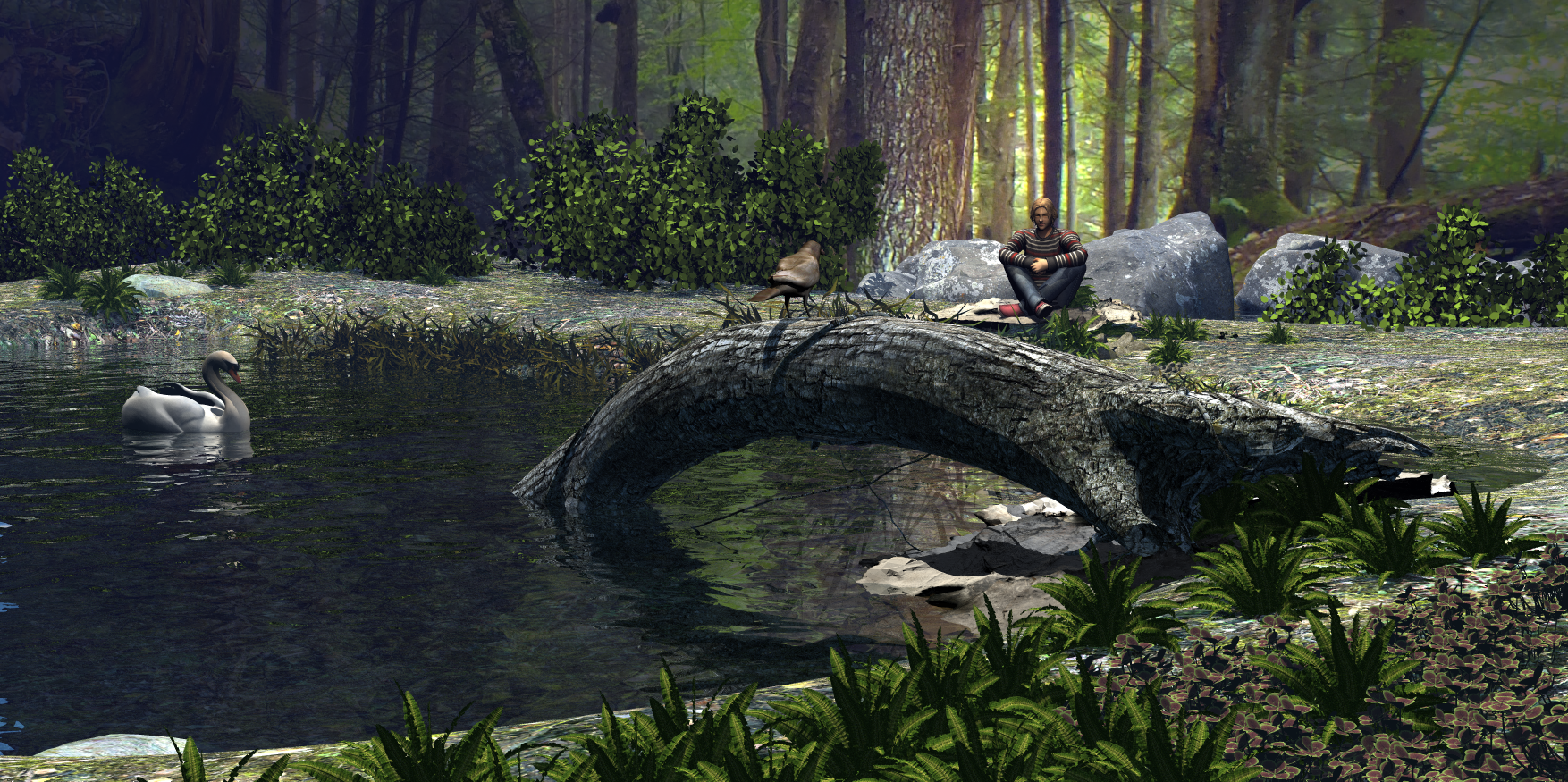 My first entry, using bushes, modified and lighting from the Vegetation Product, xFrog trees and freebies. The Bridge is by Pam (Chohole)