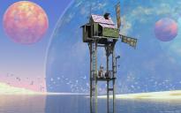 I do so enjoy creating Bryce moons… G2 male, outfit and bird flock from DAZ3D, Wind tower by1971s. Illuminated by the sun and use sky IBL. Rendered at 16 RPP, TA enabled - about three hours to render. Good luck to all and thanks for taking a look!